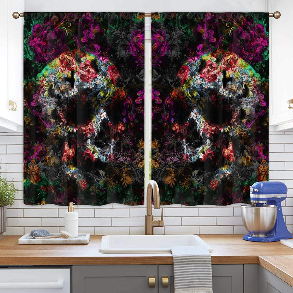 Yipa Kitchen Curtains Scary Rod Pocket Window Curtain Horror Living Room Tiers Short Panel Skull Topper Home Drapes Walmart Com